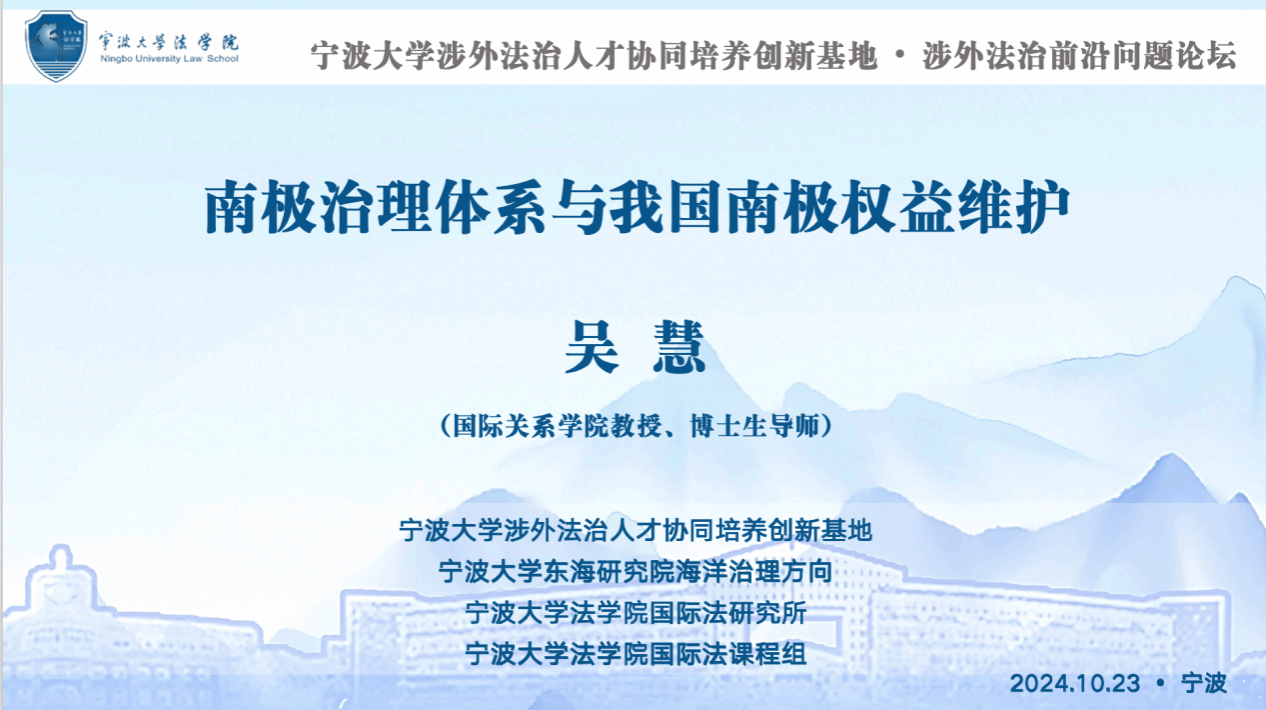 2024年10月23日晚,浙东法学讲坛第五十讲暨涉外法治前沿系列(四)“南极治理体系与我国南极权益维护”讲座在404吧