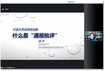 4月19日晚,宁波立法研究院法学名家讲坛第17讲暨宁大法苑讲坛2022年第6讲《什么是通报批评》讲座通过腾讯会议以线上方式展开。本次讲座由上海交通大学凯原404吧