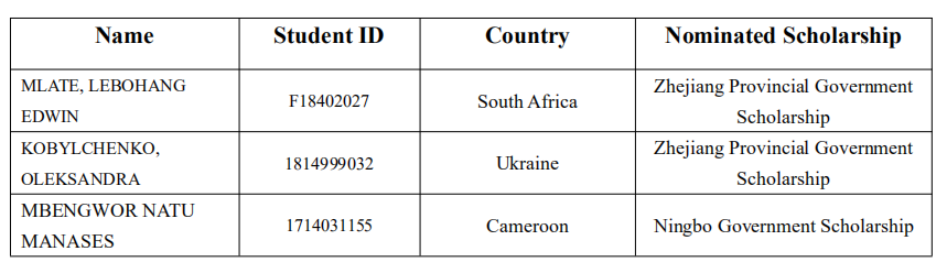After the evaluation from the scholarship committee ofLawSchool,We are delighted to publish thenomination list for 2019ZhejiangGovernment and Ningbo Government Scholarship. The nomination list is formed according to GPA,Attendance,Honour and Contributions,records of later back to dormitory,records of violation of crime and university rules. For those who do not hand in complete materials in time lose qualification for scholarship.The nominees will be submitted to the school for review.